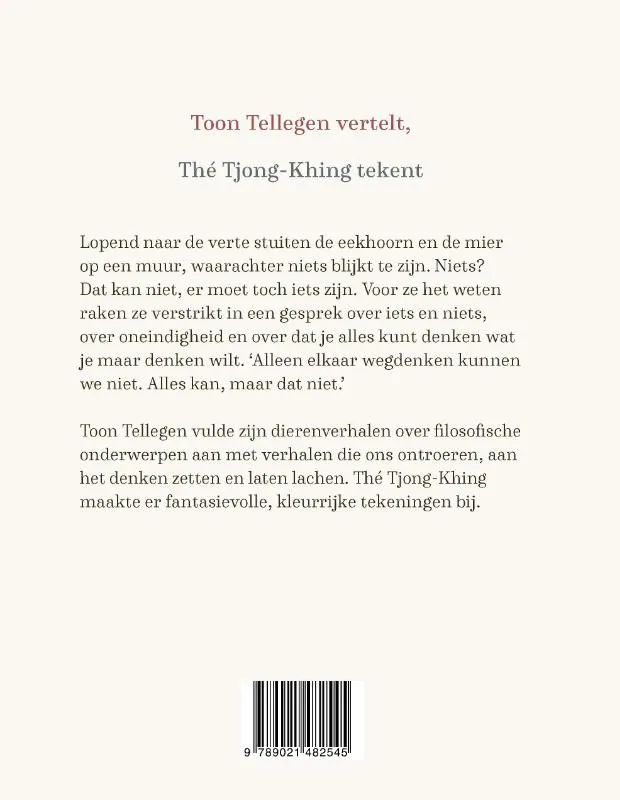 Toon Tellegen vulde zijn dierenverhalen over filosofische onderwerpen aan met verhalen die ons ontroeren, aan het denken zetten en laten lachen. Thé Tjong-Khing maakte er fantasievolle, kleurrijke tekeningen bij.