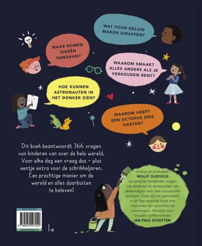 Kunnen vissen met elkaar praten? Waar komen ideeën vandaan? Hoe kan het dat we verschillende smaken proeven? Hoe kunnen astronauten in het donker zien? Waarom heeft een octopus drie harten? Ben jij ook iemand die altijd vol vragen zit? Gelukkig krijg je in dit boek veel antwoorden… maar liefst 366. Zo kun je elke dag weer iets nieuws leren – ook in een schrikkeljaar!
