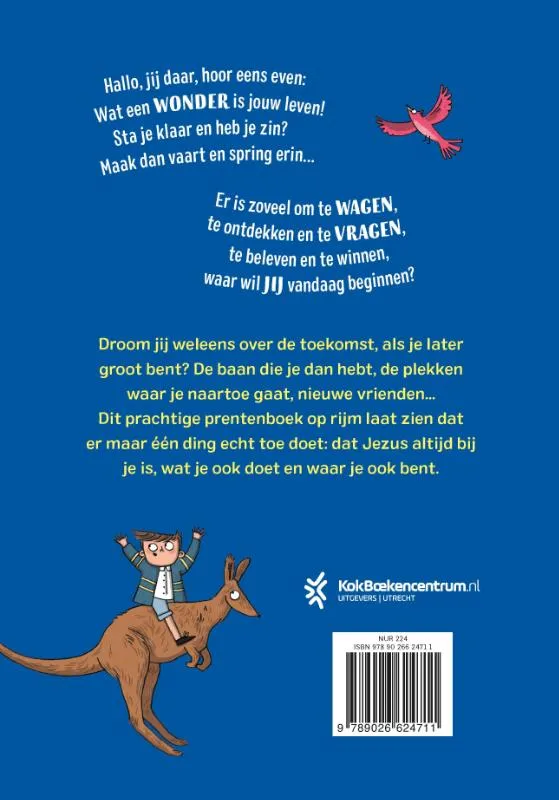 Worden wat je wil, dat is het thema van de Kinderboekenweek 2021. Dit boek vol beroepen sluit hier perfect bij aan. Elk kind droomt graag over de toekomst, als je later groot bent: de baan die je hebt, de plekken waar je naartoe gaat, nieuwe vrienden… Voor christelijke ouders is de belangrijkste ambitie echter dat hun kinderen van Jezus houden en Hem volgen. In dit mooi geïllustreerde prentenboek op rijm, vertaald door Joke Verweerd, wordt deze boodschap op een speelse en eigentijdse manier overgebracht.