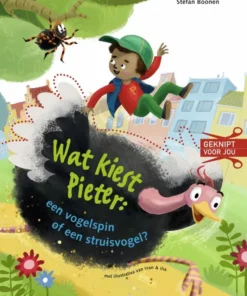 In Wat kiest Pieter: een vogelspin of een struisvogel? dit bijzondere boek op AVI M4 kiest de lezer zelf de afloop van het verhaal. Hoe dat kan? Het verhaal is letterlijk doormidden geknipt. Pieter houdt erg van dieren. Hij leest in de krant: ‘Wij zoeken oppas voor de dieren uit ons dierenpark.’ Dat is echt iets voor hem! Al houdt zijn moeder niet zo van dieren, toch kan Pieter het niet laten om even te gaan kijken. Alleen een struisvogel en vogelspin zijn nog over. Welk dier kan hij het beste kiezen en voor zijn moeder verborgen houden?