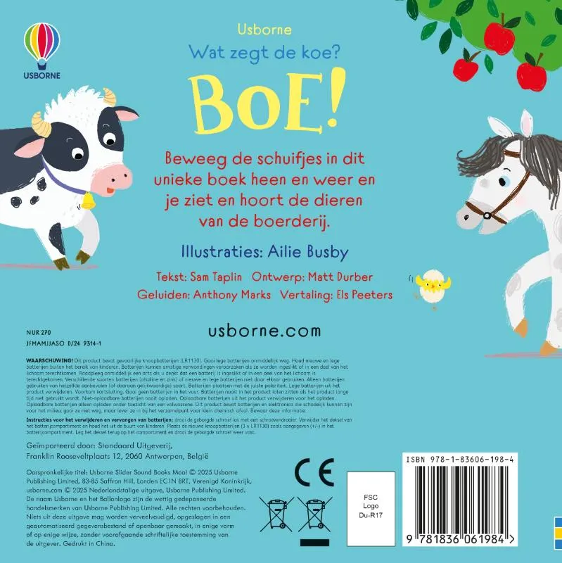 Beweeg de schuifjes in dit unieke boek heen en weer en je ziet en hoort de dieren van de boerderij.