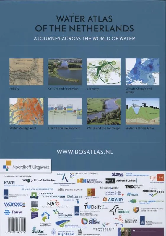 Met deze water atlas of the Netherlands maakt u een reis door de wereld van het water. Onderwerpen als watermanagement, landbouw en visserij, drinkwaterwinning en rivieren en zeeën komen voorbij in meer dan 300 kaarten en afbeeldingen.