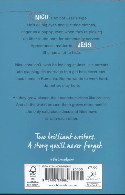 Jess would never have looked twice at Nicu if her friends hadn’t left her in the lurch. Nicu is all big eyes and ill-fitting clothes, eager as a puppy, even when they’re picking up litter in the park for community service. He’s so not her type. Appearances matter to Jess. She’s got a lot to hide.