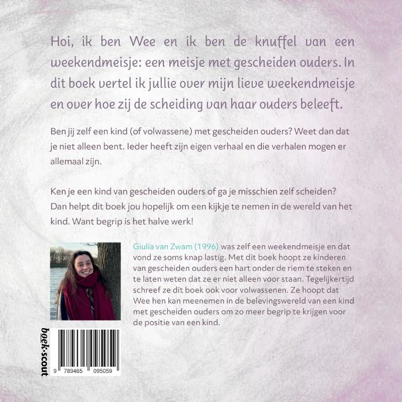 Hoi, ik ben Wee en ik ben de knuffel van een weekendmeisje: een meisje met gescheiden ouders. In dit boek vertel ik jullie over mijn lieve weekendmeisje en over hoe zij de scheiding van haar ouders beleeft.<br>