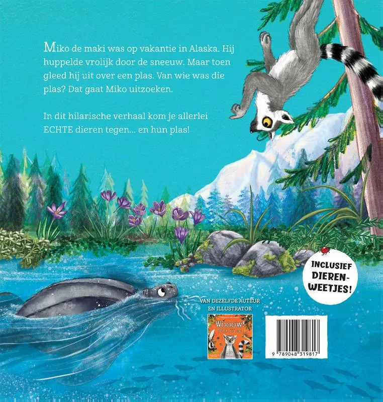 Miko de maki was op vakantie in Alaska. Hij huppelde vrolijk door de sneeuw. Maar toen gleed hij uit over een plas. Van wie was die plas? Dat gaat Miko uitzoeken.
