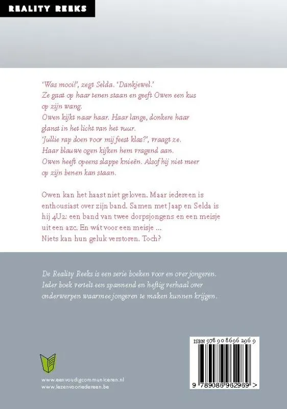 Owen en Jaap uit klas 2C nemen vluchtelinge Selda op in hun bandje. Owen wordt verliefd op haar, maar Selda moet terug naar Baskistan. Verhaal in korte zinnen en gemakkelijke woorden. Vanaf ca. 12 jaar.