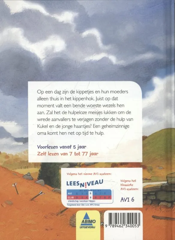 Alle hanen jagen een wezel weg. Maar dan valt een bende van veertig wezels de kippetjes en kuikentjes aan. Gelukkig krijgen ze hulp. AVI-M5. Vanaf ca. 8 jaar.