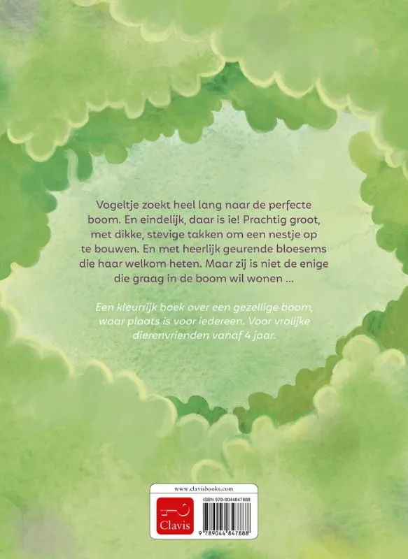 Vogeltje zoekt heel lang naar de perfecte boom. En eindelijk, daar is ie! Prachtig groot, met dikke, stevige takken om een nestje op te bouwen. En met heerlijk geurende bloesems die haar welkom heten. Maar zij is niet de enige die graag in de boom wil wonen …