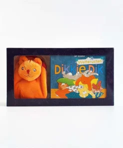 Een onweerstaanbaar kraamcadeautje: het kartonboekje ‘Welterusten, Dikkie Dik!’ met een prachtig Dikkie Dik-knuffeldoekje van Happy Horse, verpakt in een luxe cadeaubox.