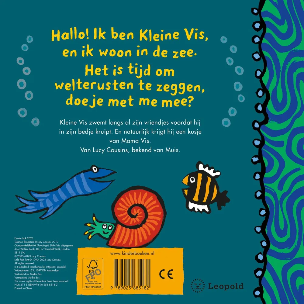 Kleine Vis woont in de grote zee. Voor hij gaat slapen, zwemt hij langs Rode en Gele vis, Oogvis, Wolkenvis, Slakvis, Onderstebovenvis, Tandenvis en nog veel meer vriendjes om ze een goede nacht te wensen.