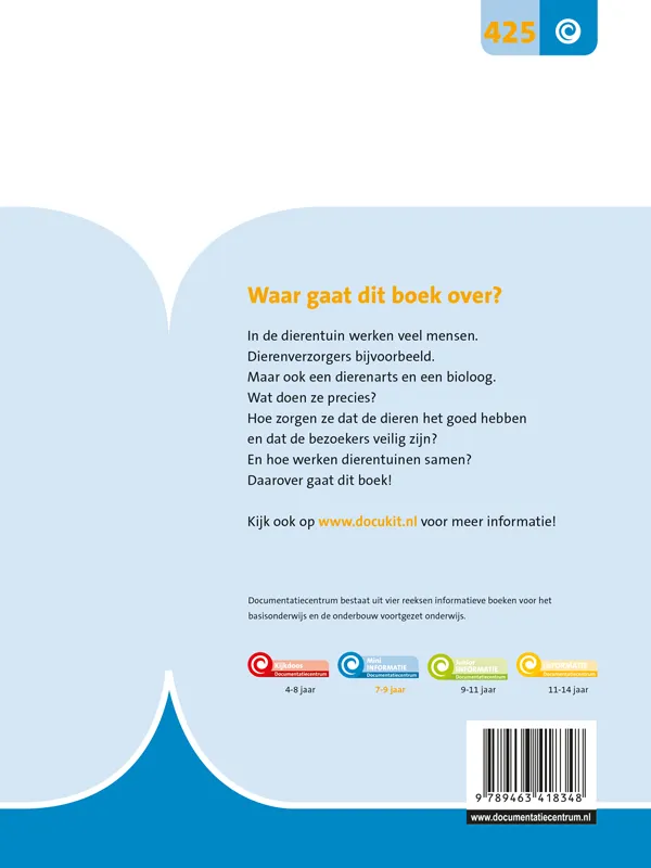 In de dierentuin werken veel mensen. Dierenverzorgers bijvoorbeeld. Maar ook een dierenarts en een bioloog. Wat doen ze precies? Hoe zorgen ze dat de dieren het goed hebben en dat de bezoekers veilig zijn? En hoe werken dierentuinen samen? Daarover gaat dit boek!