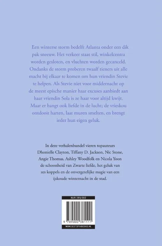 Topauteurs Nicola Yoon, Angie Thomas, Nic Stone, Dhonielle Clayton, Tiffany D. Jackson en Ashley Woodfolk sloegen na Blackout opnieuw de handen ineen en schreven samen een roman over zwarte tienerliefde, waarin alle relaties zo uniek en sprankelend zijn als sneeuwvlokken.