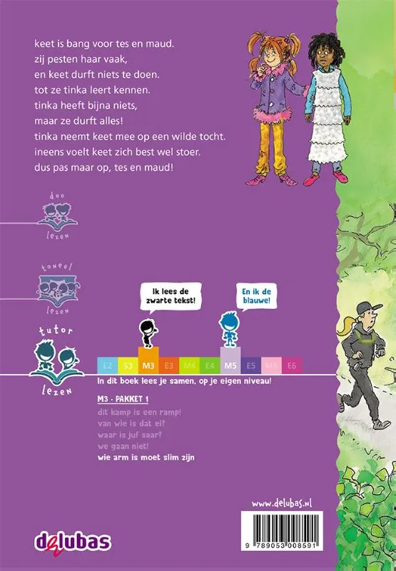 Wie arm is moet slim zijn is een van de boeken uit het M3 pakket 1 tutorlezen van Uitgeverij Delubas, speciaal ontwikkeld voor tutorlezen, met M3 als leesniveau voor de beginnende of zwakkere lezer.
