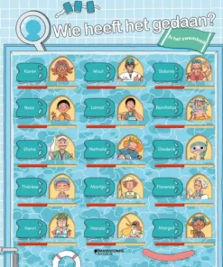 Lees de spannende avonturen van de vaste bezoekers van dit zwembad en vind de dader aan de hand van de aanwijzingen die in de verhalen zitten verstopt. Schuif de luikjes dicht van de personages die niet overeenkomen met de beschrijving van de verdachte. Uiteindelijk blijft er nog maar één iemand over!