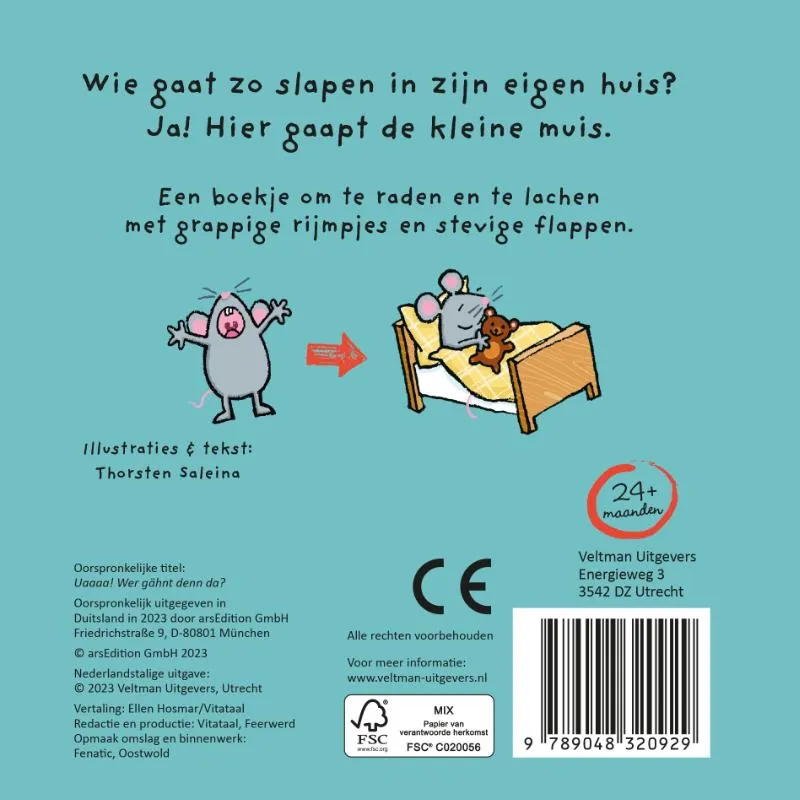 Wie gaat zo slapen in zijn eigen huis? Ja! Hier gaapt de kleine muis. Een boekje om te raden en te lachen met grappige rijmpjes en stevige flappen.