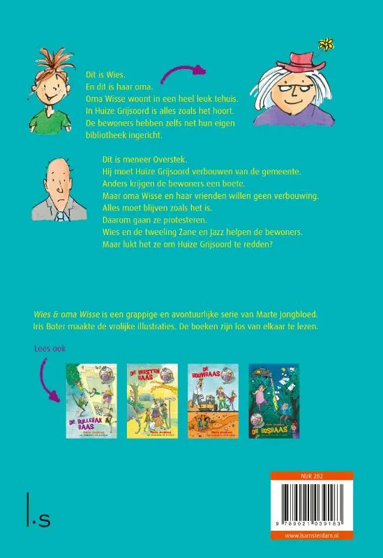 Wies en de tweeling Zane en Jazz zijn graag in Huize Grijsoord, het gezellige tehuis van oma Wisse en haar vrienden. Op een dag komen er mannen met meetlinten langs. Ze zijn van Stichting Welzijn en Woonveiligheid. Hun baas zegt dat het tehuis moet worden verbouwd. De bewoners krijgen anders een torenhoge boete. Maar de verbouwing is een ramp. Het is ineens veel gevaarlijker om in Huize Grijsoord te wonen! Wies verzint samen met Zane en Jazz een actie om oma Wisse en haar vrienden te helpen.