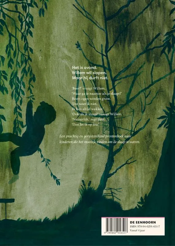 Willem is bang voor wat er gebeurt als hij in slaap valt. Misschien krijgt hij wel enge dromen! Gelukkig is Beer er om hem gerust te stellen. Prentenboek met gekleurde illustraties. Vanaf ca. 4 jaar.