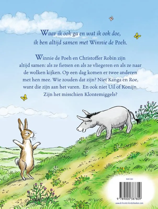 Winnie de Poeh en Christopher Robin zijn altijd samen: als ze fietsen, en als ze vliegeren, en als ze naar de wolken kijken. Maar dan komen er twee anderen met ze mee. Wie kunnen dat nou zijn? Niet Kanga en Roe – die zijn aan het varen. En ook niet Uil of Konijn. Zouden het dan de Klontemiggels zijn?