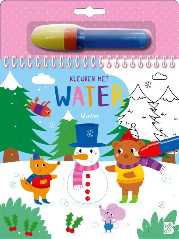 Vul de pen met water en ga ermee over de kleurplaten vol wintertaferelen. Er gebeurt iets magisch: de kleuren en de verborgen elementen uit de tekening komen tevoorschijn! Zo kun je alle zoekvraagjes beantwoorden. Is het water gedroogd? Dan begin je gewoon opnieuw! Ideaal voor kleuters om te leren kleuren, zonder kans op vlekken.