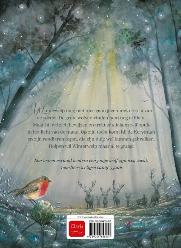 Winterwelp mag niet mee gaan jagen met de rest van de roedel. De grote wolven vinden hem nog te klein. Maar hij wil zich bewijzen en trekt er stiekem zelf opuit in het licht van de maan. Op zijn tocht komt hij de Kerstman en zijn rendieren tegen, die zijn hulp wel kunnen gebruiken. Helpen wil Winterwelp maar al te graag!