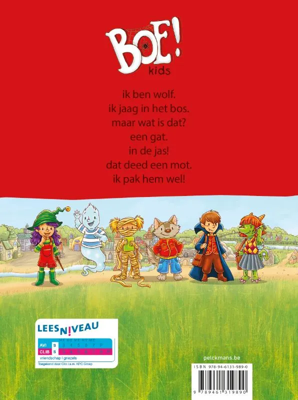Wolf is in het bos. Hij ziet een mot. De mot maakt een gat in zijn jas. Wolf wordt boos. AVI-Start. Vanaf ca. 6 jaar.