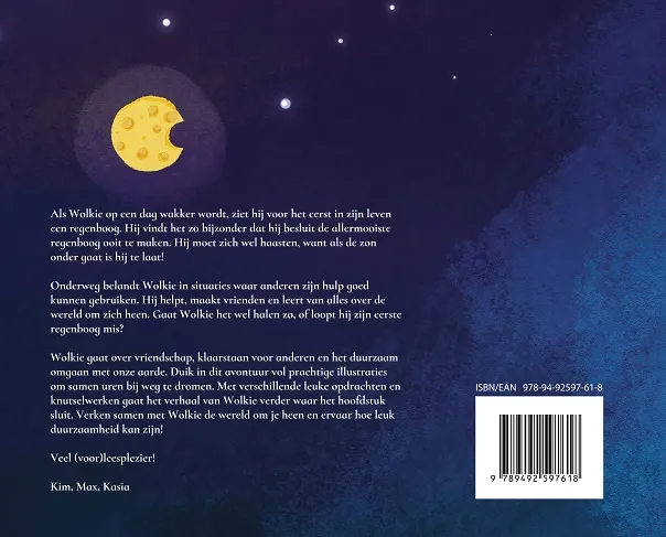 Wolkie gaat over vriendschap, klaarstaan voor anderen en het duurzaam omgaan met onze aarde. Duik in dit avontuur vol prachtige illustraties om samen uren bij weg te dromen. Met verschillende leuke opdrachten en knutselwerken gaat het verhaal van Wolkie verder waar het hoofdstuk sluit. Verken samen met Wolkie de wereld om je heen en ervaar hoe leuk duurzaamheid kan zijn!
