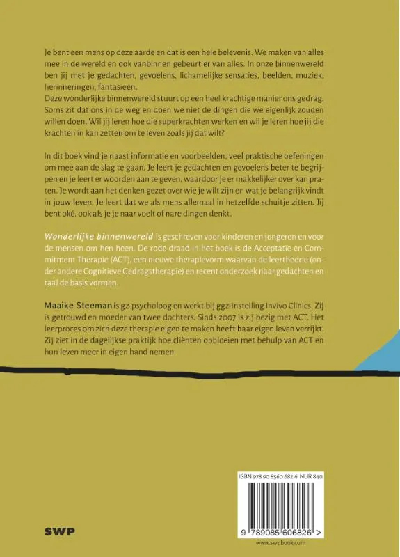 Dit boek is geschreven voor kinderen en jongeren en voor de mensen om hen heen. De rode draad in het boek is de Acceptatie en Commitment Therapie (ACT), een nieuwe therapievorm waarvan de leertheorie (onder andere Cognitieve Gedragstherapie) en recent onderzoek naar gedachten en taal de basis vormen. Het verscheen eerder onder de titel ‘Denken, voelen, doen’.