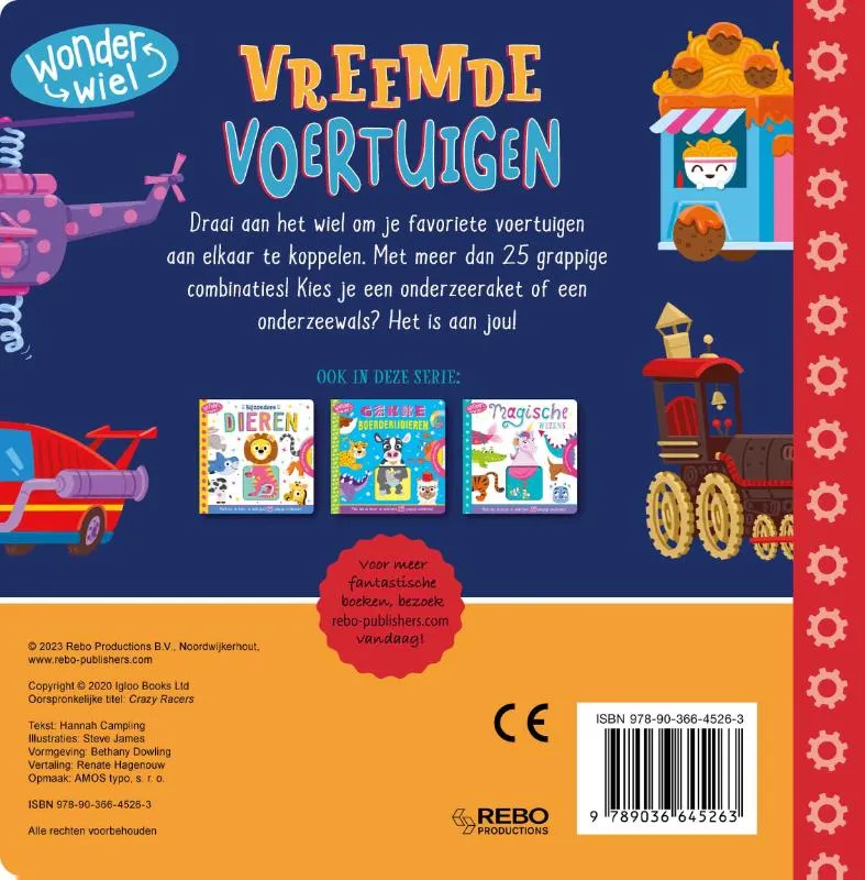 Dit grappige boek met draaiwiel laat kinderen op speelse wijze kennismaken met allerlei verschillende soorten voertuigen.