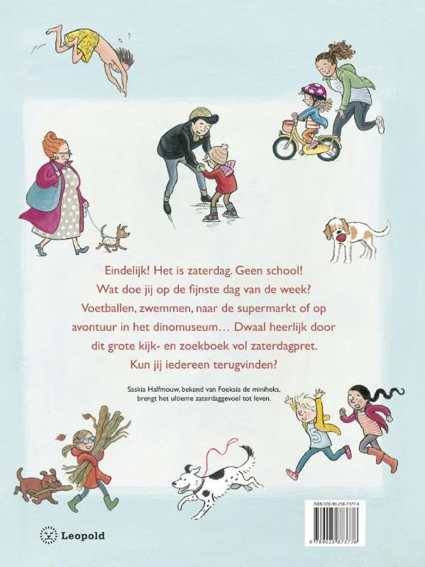 Groot kijk- en zoekboek over de fijnste dag van de week! Van illustrator Saskia Halfmouw, o.a. bekend van haar tekeningen van Foeksia de miniheks.