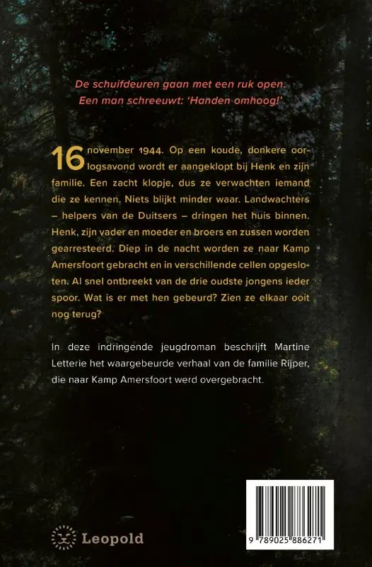 In deze indringende jeugdroman beschrijft Martine Letterie het waargebeurde verhaal van de familie Rijper, die naar Kamp Amersfoort werd overgebracht.