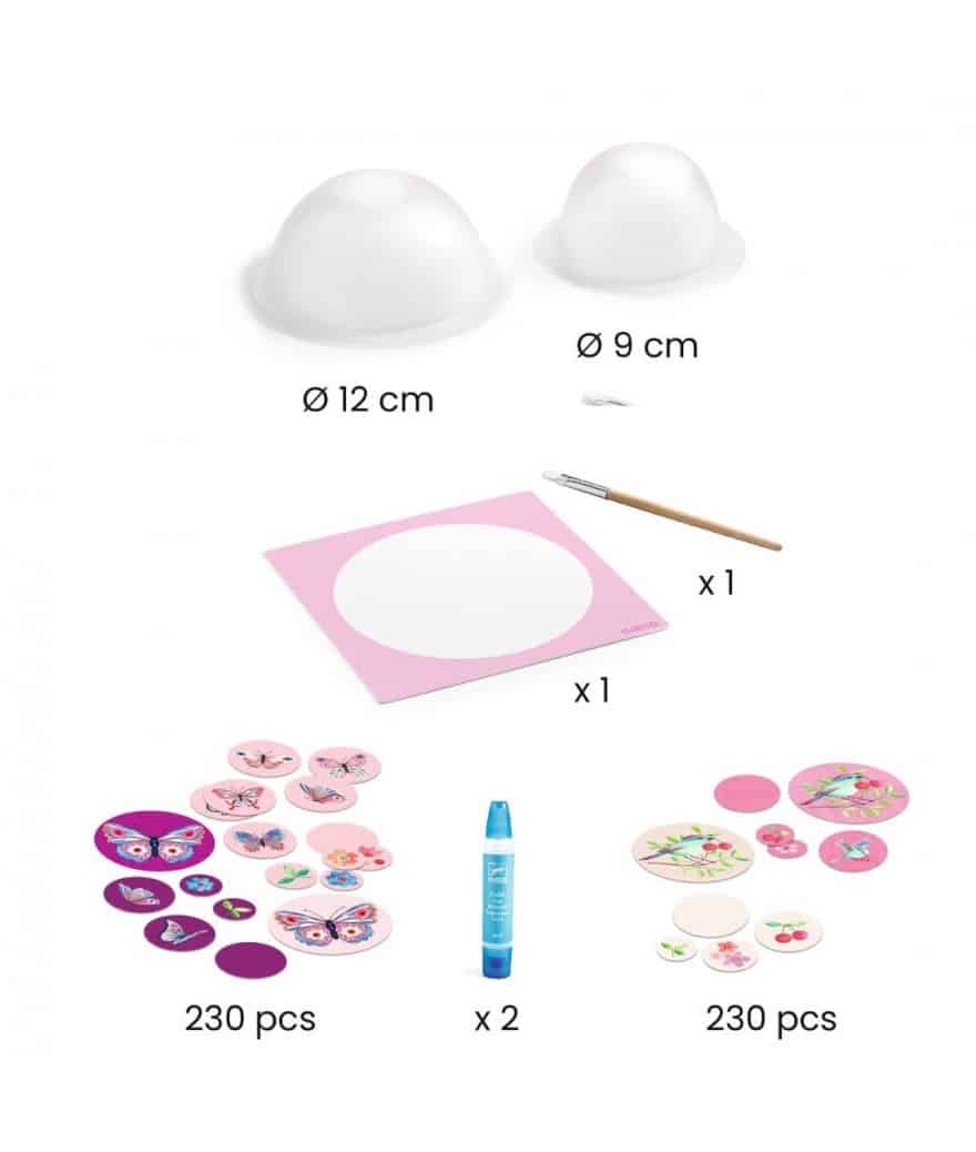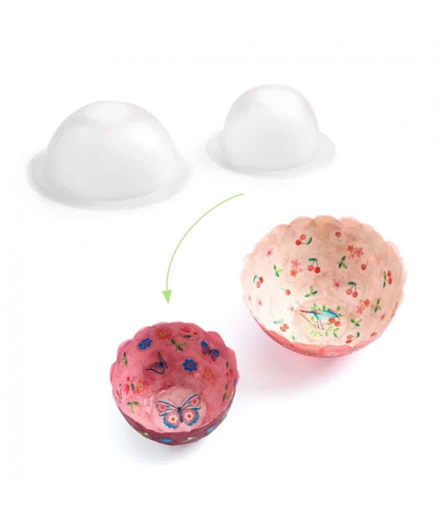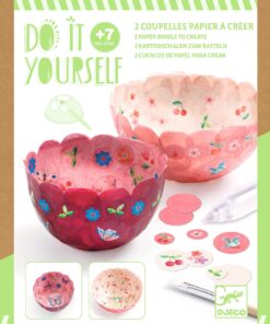 Djeco DIY Papier Maché Komen maken – Bloemen. Leuk knutselpakket om twee kommetjes te maken. Een complete creatieve set om 2 decoratieve kommetjes van papier te maken door alleen papier en lijm te gebruiken. Plak de grote confetti op de vorm met de vloeibare lijm, eerst de binnenkant en daarna de buitenkant, laat drogen en haal weer uit de vorm. Ze zijn nu klaar om gebruikt te worden!