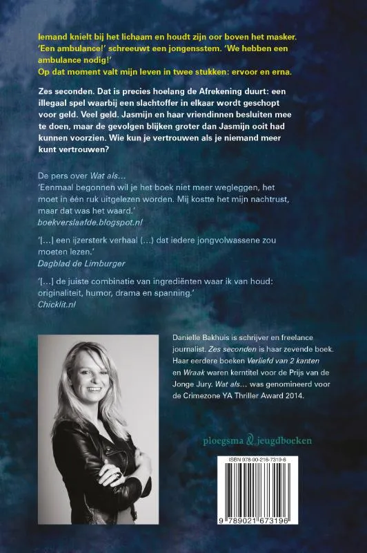 Danielle Bakhuis is schrijver en freelance journalist. Zes seconden is haar zevende boek. Haar eerdere boeken Verliefd van 2 kanten