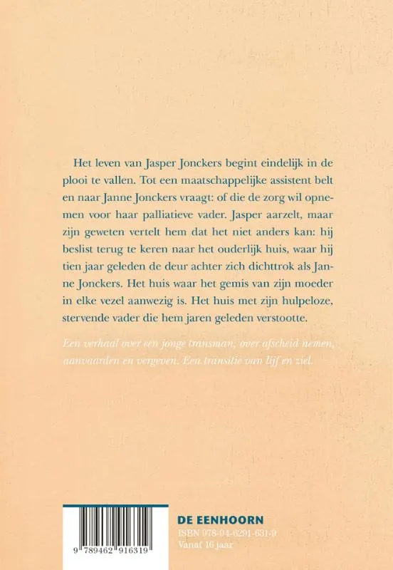 Een verhaal over een jonge transman, over afscheid nemen, aanvaarden en vergeven. Een transitie van lijf en ziel.