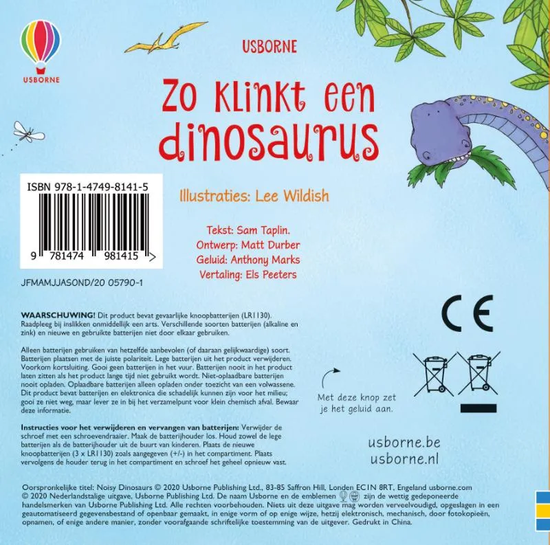 Een perfect boekje voor jonge dinofans. Als je op de knop drukt, hoor je prehistorische dieren brullen, krijsen en dreunen. Een stevig kartonboekje dat keer op keer gelezen en beluisterd kan worden.