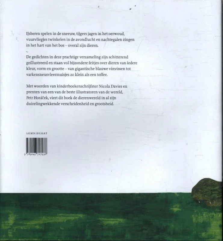 Met woorden van kinderboekenschrijfster Nicola Davies en prenten van een van de beste illustratoren van de wereld, Petr Horácek, viert dit boek de dierenwereld in al zijn duizelingwekkende verscheidenheid en grootsheid.
