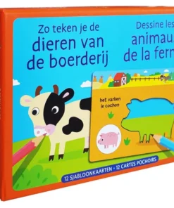 Zo teken je de dieren van de boerderij / Dessine les animaux de la ferme – 12 Sjabloonkaarten