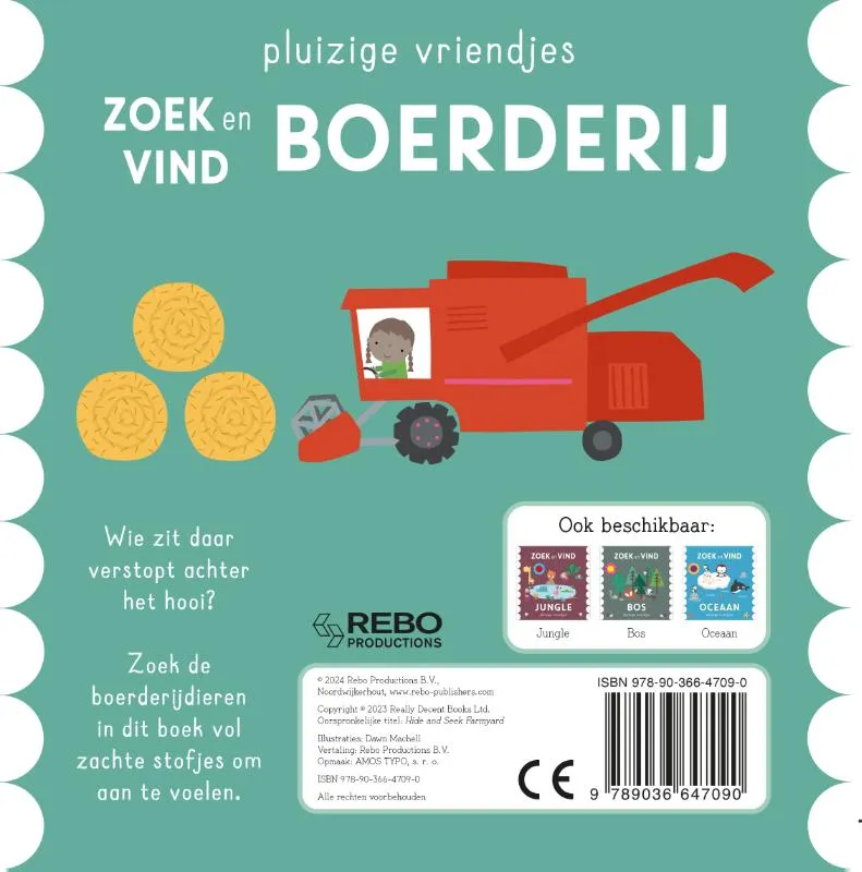 Zoek de boerderijdieren in dit boek vol zachte stofjes om aan te voelen.