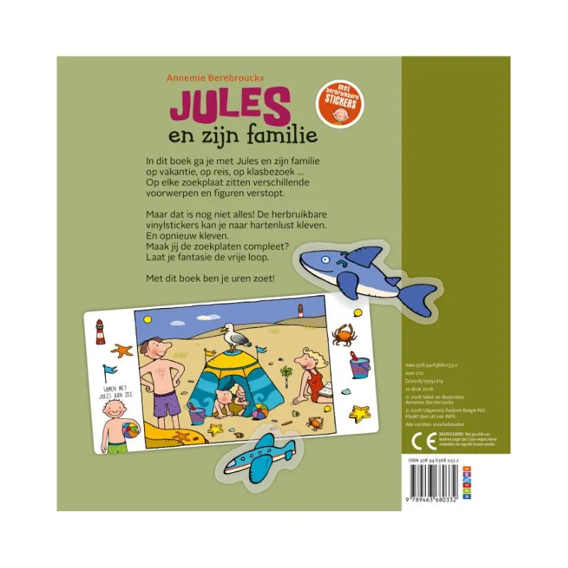 In dit boek ga je met Jules en zijn familie op vakantie, op reis, op klasbezoek … Op elke zoekplaat zitten verschillende voorwerpen en fi guren verstopt.