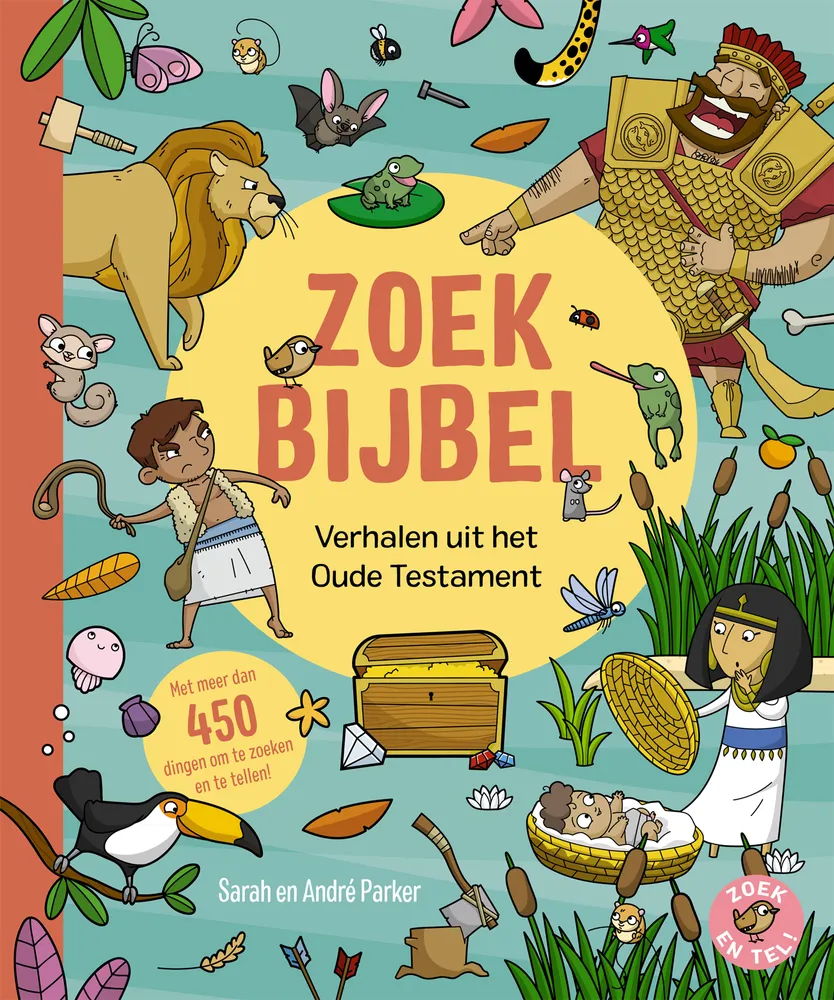 In deze prachtig geïllustreerde Zoekbijbel van Sarah en André Parker ga je op reis door het Oude Testament en zoek je mee naar gevaarlijke krokodillen, hongerige leeuwen en een baby in het riet. Er staan 8 Bijbelverhalen in dit boek, met onder andere de verhalen van Adam en Eva, Noach en Jona. Lukt het jou om alle mensen, dieren en voorwerpen te vinden? Met op elke pagina meer dan vijftig dingen om te tellen en te zoeken!