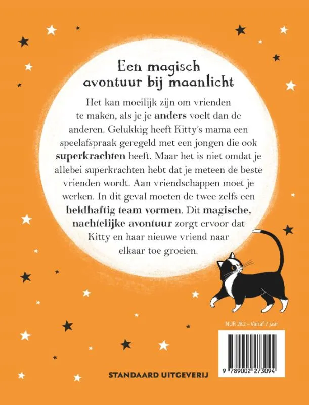 Het kan moeilijk zijn om vrienden te maken, als je je anders voelt dan de anderen. Gelukkig heeft Kitty’s mama een speelafspraak geregeld met een jongen die ook superkrachten heeft. Maar het is niet omdat je allebei superkrachten hebt dat je meteen de beste vrienden wordt. Aan vriendschappen moet je werken. In dit geval moeten de twee zelfs een heldhaftig team vormen. Dit magische, nachtelijke avontuur zorgt ervoor dat Kitty en haar nieuwe vriend naar elkaar toe groeien.