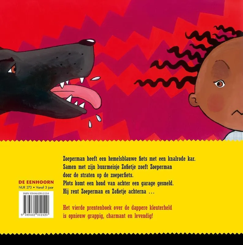 Zoeperman heeft een hemelsblauwe fiets met een knalrode kar. Samen met zijn buurmeisje Zofietje zoeft Zoeperman door de straten op de zoeperfiets. Plots komt een hond van achter een garage gesneld. Hij rent Zoeperman en Zofietje achterna …