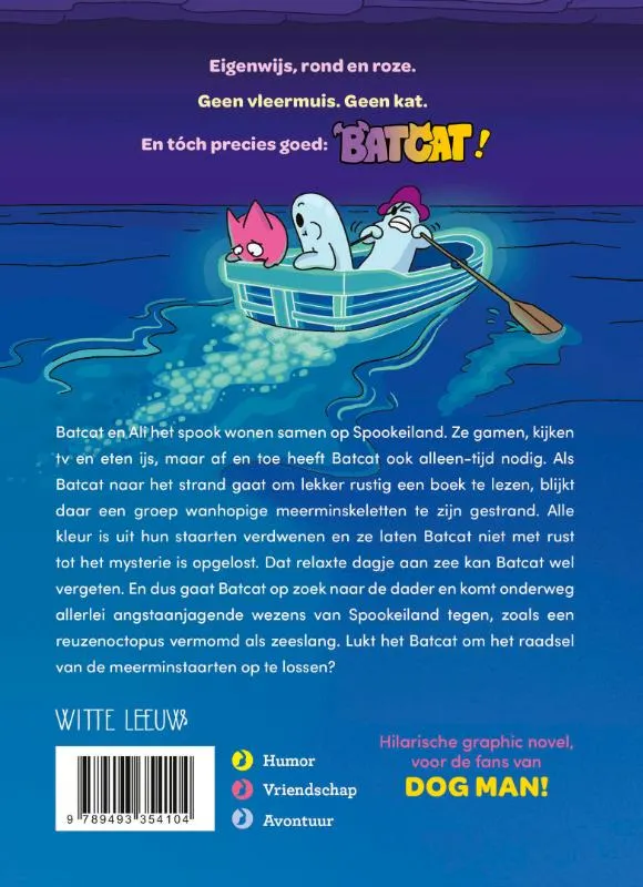 Batcat en Ali het spook wonen samen op Spookeiland. Ze gamen, kijken tv en eten ijs, maar af en toe heeft Batcat ook alleen-tijd nodig. Als Batcat naar het strand gaat om lekker rustig een boek te lezen, blijkt daar een groep wanhopige meerminskeletten te zijn gestrand. Alle kleur is uit hun staarten verdwenen en ze laten Batcat niet met rust tot het mysterie is opgelost. Dat relaxte dagje aan zee kan Batcat wel vergeten. En dus gaat Batcat op zoek naar de dader en komt onderweg allerlei angstaanjagende wezens van Spookeiland tegen, zoals een reuzenoctopus vermomd als zeeslang. Lukt het Batcat om het raadsel van de meerminstaarten op te lossen?